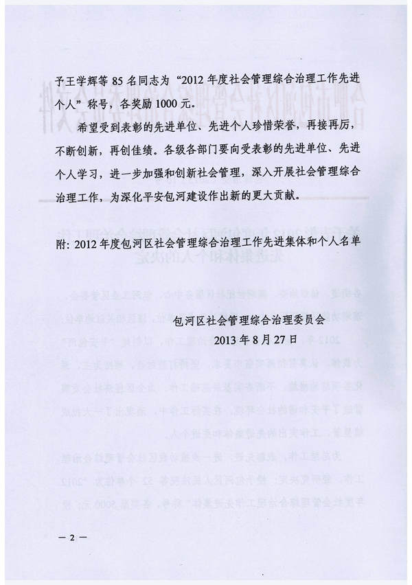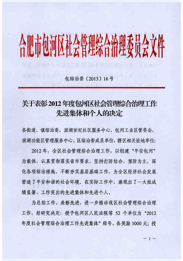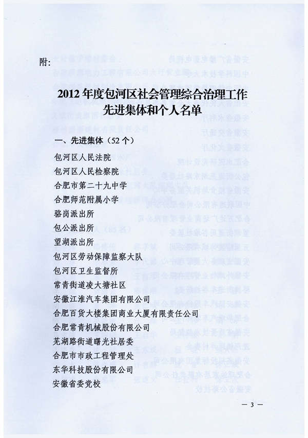 公司喜獲“2012年度包河區(qū)社會(huì)管理