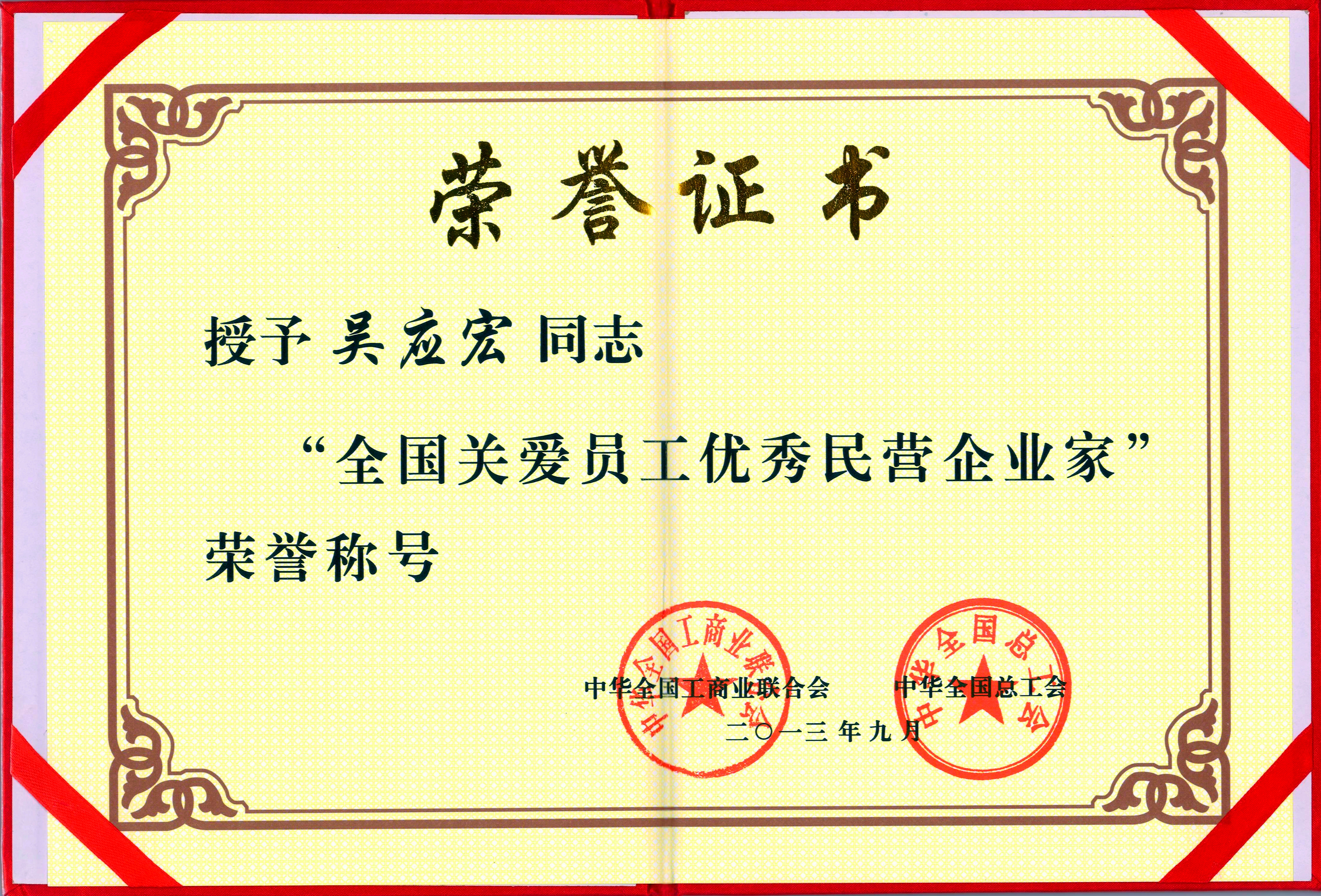 “全國關(guān)愛員工優(yōu)秀民營企業(yè)家”榮譽稱號