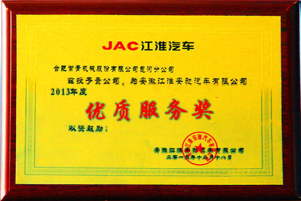 近日,江淮汽車2013年度供應(yīng)商評選中,我公司被江淮汽車股份有限公司評為“優(yōu)秀供應(yīng)商”,同時被評為江淮安馳汽車 “優(yōu)質(zhì)服務(wù)獎”和江淮專用車“優(yōu)秀供應(yīng)商”稱號。