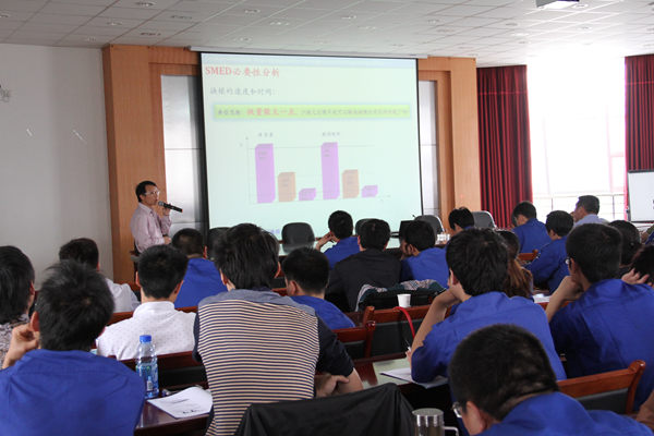 2014年5月17日,合肥常青機(jī)械股份有限公司在包河分公司二樓圓形會議室,舉辦了由技術(shù)中心、人力資源部組織的 “快速換模(SMED)”培訓(xùn),此次培訓(xùn)由公司負(fù)責(zé)精益生產(chǎn)模塊工作的胡偉老師主講,各分公司分管技術(shù)、質(zhì)量副總、技術(shù)部成員及各沖壓車間主任和機(jī)長共計98人參加學(xué)習(xí)。