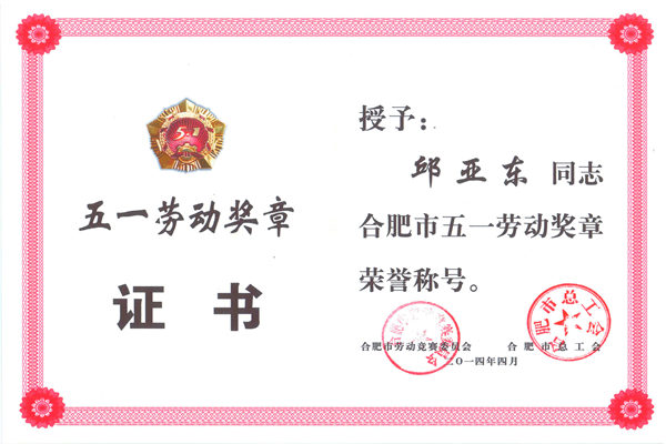 常瑞公司總經(jīng)理邱亞東榮獲“合肥市五一勞動獎?wù)?rdquo;