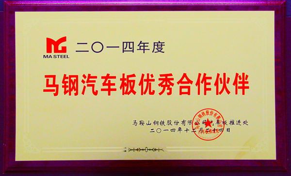 12月23日,在馬鋼召開2015年汽車板年會(huì)上,授予合肥常青機(jī)械股份有限公司公司“二○一四年度馬鋼汽車板優(yōu)秀合作伙伴”。