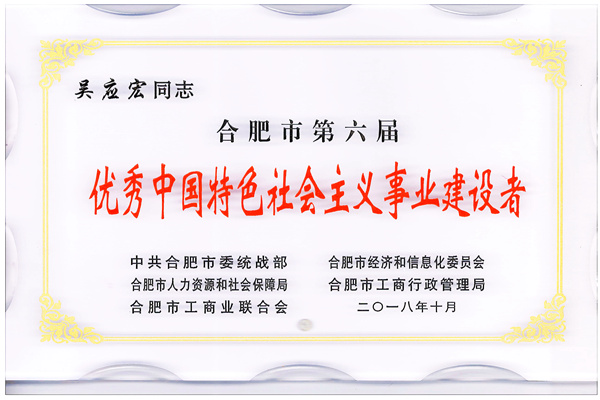 熱烈祝賀吳應宏董事長榮獲“合肥市第六屆優(yōu)秀中國特色社會主義事業(yè)建設者”榮譽稱號