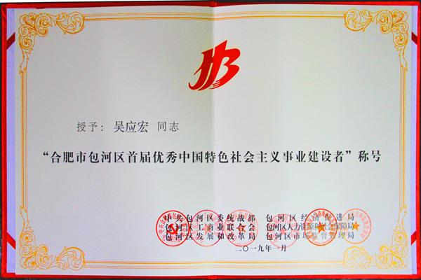 熱烈祝賀吳應(yīng)宏董事長(zhǎng)榮獲“合肥市包河區(qū)首屆優(yōu)秀中國(guó)特色社會(huì)主義事業(yè)建設(shè)者”