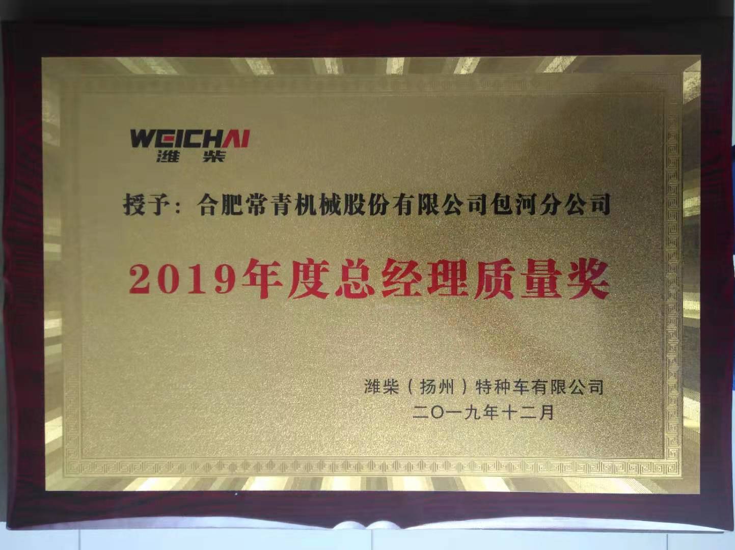 合肥常青機(jī)械股份有限公司包河分公司喜獲2019年度 濰柴特車“總經(jīng)理質(zhì)量獎”
