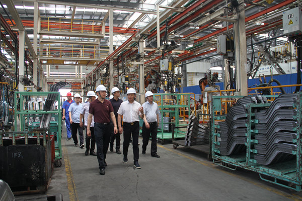 克克市長(zhǎng)一行來到常青股份包河分公司深入生產(chǎn)一線,先后參觀原材料加工基地、沖壓線、重卡駕駛室自動(dòng)化焊裝生產(chǎn)線,詳細(xì)了解企業(yè)發(fā)展情況。