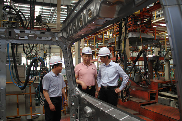 夏書記一行先后深入公司重卡縱梁輥壓生產(chǎn)線、重卡車架鉚接線、重卡自動化駕駛室生產(chǎn)線實地考察后,來到包河分公司二樓會議室圍繞汽車行業(yè)發(fā)展、含山縣投資環(huán)境、常青股份公司未來發(fā)展方向進行多方交流座談。