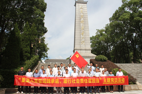 上午9點(diǎn)10分,常青股份公司合肥地區(qū)32名黨員、入黨積極分子來(lái)到潛山烈士陵園,在莊嚴(yán)肅穆的烈士紀(jì)念碑前,黨員們列隊(duì)肅立,面對(duì)鮮紅的黨旗新老黨員一起入黨宣誓,深切緬懷革命先烈的崇高精神和不朽偉業(yè)。