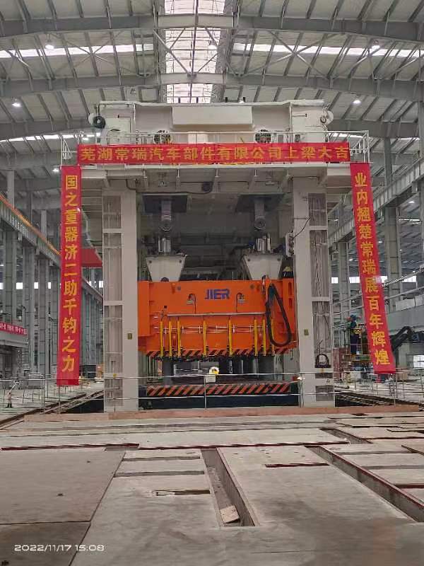 “業(yè)內(nèi)翹楚常瑞展百年輝煌;國之重器濟二助千鈞之力”2022年11月18日(農(nóng)歷十月廿五),蕪湖常瑞二期工廠A線2400噸伺服壓機上梁圓滿成功。公司零部件事業(yè)部總裁王昆、技術(shù)中心副主任黃云,蕪湖常瑞公司總經(jīng)理徐豐及管理層、濟南二機現(xiàn)場經(jīng)理范正朋及現(xiàn)場施工人員出席上梁儀式。