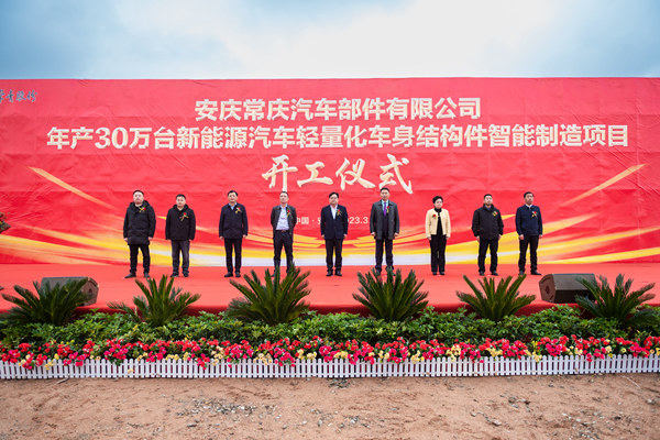 3月17日,公司年產(chǎn)30萬臺新能源汽車輕量化車身結(jié)構(gòu)件智能制造項目開工儀式在安慶常慶公司隆重舉行。安慶市經(jīng)開區(qū)管委會主任張劍、副主任黃震、紀(jì)委書記嚴(yán)衛(wèi)江,公司領(lǐng)導(dǎo)及常慶公司員工等百人參加了活動。特邀振宜汽車副總經(jīng)理林軍、江淮汽車生產(chǎn)總監(jiān)孫凱、安慶汽車工業(yè)協(xié)會副秘書長詹世謀出席活動。