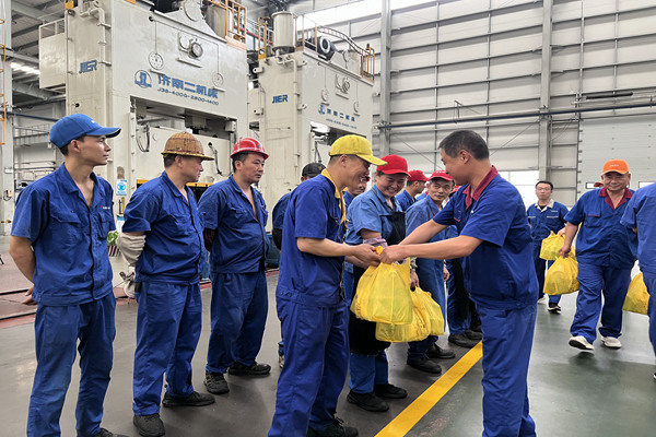 在常盛公司生產(chǎn)現(xiàn)場(chǎng),江汽系事業(yè)部總裁陶春潮、公司工會(huì)主席程義慰問了正在忙碌的2022年度優(yōu)秀班組大沖班,為奮戰(zhàn)在一線的員工們送去飲料、綠豆、白糖、毛巾、驅(qū)蚊水、水壺等防暑降溫套裝,叮囑員工們?cè)谙娜崭邷刈鳂I(yè)下注意防暑降溫,以點(diǎn)帶面,爭(zhēng)先創(chuàng)優(yōu),激勵(lì)員工鼓足干勁,再創(chuàng)佳績(jī)!并要求單位負(fù)責(zé)人嚴(yán)格落實(shí)各項(xiàng)勞動(dòng)保護(hù)措施,務(wù)必讓員工以更安全、更健康的狀態(tài)投入工作。
