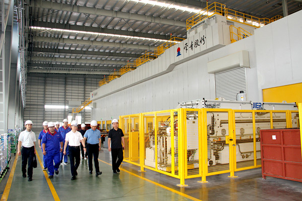 姚常委一行深入公司肥西新港基地自動(dòng)化沖壓生產(chǎn)線了解了生產(chǎn)情況,產(chǎn)品結(jié)構(gòu)及作業(yè)模式;